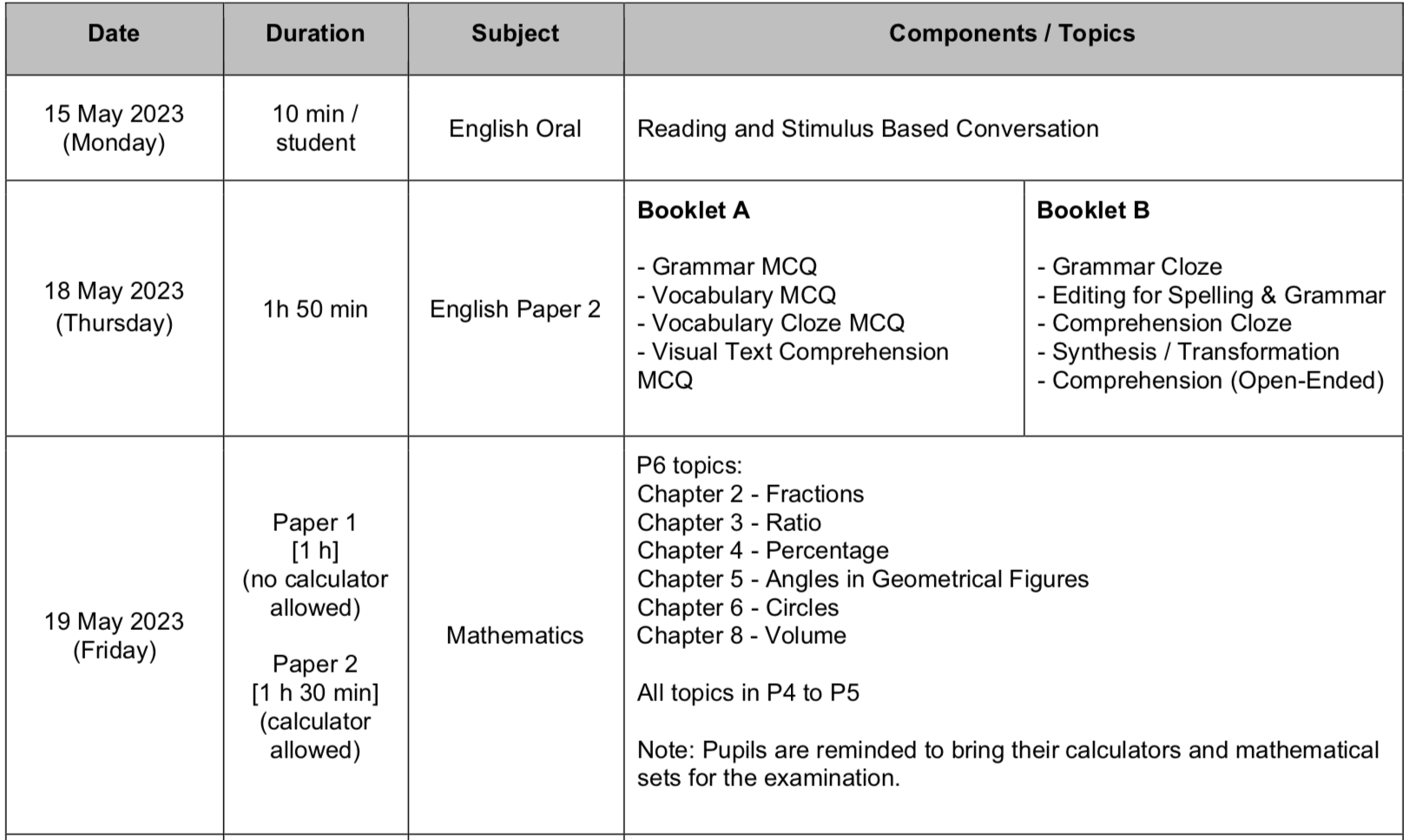 - P4 - 6 Math, English , Mandarin and Science Students are currently training on mock papers to ace the Mid Year Examinations.